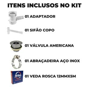Adaptador para máquina de lavar louça + válvula americana + sifão copo universal + abraçadeira 1 + fita veda rosca
