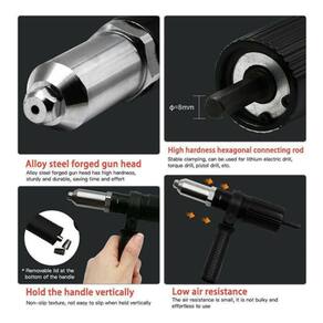 adaptador de rebitador.:: resistencia e praticidade ::..:: (melhor eficiência da categoria) ::.. . . . . . . . . . . . . . . * ul71mas peças com 20% off (4pr0ve1te)********************* descrição do produto ********************características:cabeça de liga de aço forjado, rebites rápidos resistentes e práticos. o clipe de têmpera e endurecimento de três mandíbulas é mais resistente ao desgaste e prolonga a vida útil do adaptador. o parafuso hexagonal do adaptador é conectado à furadeira elétrica, que rapidamente se transforma em uma máquina de rebite elétrico e é fácil de instalar.a biela hexagonal de alta dureza está firmemente presa e pode ser u5ad4 em furadeira elétrica de lítio, broca helicoidal, furadeira manual, etc.puxe o rebite no sentido horário e puxe o rebite. amplamente ut1l1zad0 na indústria de portas e janelas, produção de aparelhos elétricos e ar condicionado, equipamentos de aviação e navegação, liga de alumínio e outros rebites, fabricação e produção de automóveis.especificações:material: liga duracor: preto+pratainterface de rebite adequada: 2,4 mm, 3,2 mm, 4,0 mm, 4,8mm comprimento do mandril: 30 mm/1,2 pol.diâmetro do mandril: 8 mm/0,3 pol.comprimento total do adaptador: 143 mm/5,6 pol. (sem mandril)comprimento total da chave: 149 mm/5,9 pol.comprimento total da alça: 123 mm/4,8 pol.tamanho do pacote: 145* 65* 45 mm/5,7* 2,6* 1,8 pol.peso da embalagem: 470g/1.0lbconteúdo da embalagem:1x adaptador de rebitador1x chave1x alça3x bico. . . . . . . . . . . . . . . . . . . . . . . . . . . . . . . . . . . . . . . . . . . . . . . . . . . . .produto campeão de vendas em nossas lojas. . . . . . . . . . . . . . *** verifique disponibilidade *** . . . . . . . . . . . .. . . . . . . . . . . . . . . . . . . . . . . . . . . . . . . . . . . . . . . . . . . . . . . . . . . . .********* gar4ntias ************ entr3g4........: recebimento ou seu dinheiro de volta* este produto tem gar4ntia após recebimento* produto or1g1nal: gar4ntia do fabricante após 30 dias* cod. consumidor. seus direitos são gar4ntidos pelo c.d.c.********* sobre nossa loja ************** quem somos.: atuamos no e-commerce desde 2009. nossas compras são feitas no 4tac4do para gar4ntir o melhor preço de revenda a você.** missão.: temos como missão realizar a melhor experiência de compra e um atendimento humanizado em todo o processo, buscado ao máximo a satisfação dos clientes.** prazo de envio.: n0ss0 objetivo é postar sua encomenda em um prazo de até 24 h0r4s úteis após a confirmação do pagamento.** atendimento.: caso tenha dúvidas sobre o produto utilize o campo de perguntas no final do anuncio, possuímos uma equipe qualificada para responde-las. caso tenha tido algum contra73mp0 com o seu produto, entre em cont4to com n0ss0 svp0rte técnico que será fornecido no ch4t do pedido, vamos resolver pra você.** cana1s de atendimento: perguntas, ch4t e 4pp de mensagem- horár105: segunda a sexta-feira no horário comercial.************ duvidas frequentes ************1. os produtos são novos?todos os produtos desta loja são novos, or1g1na1s, lacrados e possuem gar4ntia.2. a m3rc4d0ria está disponível a pronta entr3g4?todas as m3rc4d0rias estão disponíveis para pronta entr3g4. e são preparados para envio em 24h uteis.3. como são realizadas as entr3g4s?realizamos nossas entr3g4s via transportadora e corre105. (não entr3g4mos em locais de difícil acesso ou com restrição de entr3g4)4. qual é o prazo de entr3g4?o prazo de entr3g4 é relativo a: cep de destino, peso, dimensão, categoria e valor do produto.5. modelos e marcas são citados apenas para melhor c0mpr3ensão dos clientes e como referência técnica para utilização correta dos produtos. decorre de necessidade legal, além de ser previsto em lei que não pode haver impedimento para tal, conforme o art. 31 do código de defesa do consumidor (lei n. 8.078/90) e art. 132, inciso ll, da lei da propriedade industrial (n. 9.279/96), que são leis federais e seguem transcritos tais dispositivos.5.1 as imagens e vídeos são meramente ilustrativos. caso tenha alguma dúvida que não esteja no descritivo, entre em cont4to.6. n0ss0 cont4to via 4pp para dúvidas e svp0rte técnico é informado assim que o pedido for efetivado.7. as encomendas são postadas exclusivamente por corre105 ou transportadora, todos dias úteis as 14:00. veja no descritivo do anuncio mais detalhes sobre seu produto. caso tenha alguma dúvida sobre sua compra, entre em cont4to no ch4t do pedido. obrigado. boas compras ;)************ aguardamos seu pedido ************.