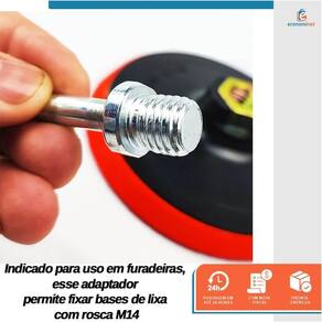 Aplicações: Indicado para uso em furadeiras, esse adaptador permite fixar bases de lixa com rosca M14, facilitando trabalhos de desbaste e acabamento em madeira, metal e outros materiais. Ideal para profissionais e hobbystas que necessitam de uma adaptação prática e segura.