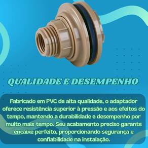 Fabricado em pvc de alta qualidade, o adaptador oferece resistência superior à pressão e aos efeitos do tempo, mantendo a durabilidade e desempenho por muito mais tempo. Seu acabamento preciso garante encaixe perfeito, proporcionando segurança e confiabilidade na instalação.