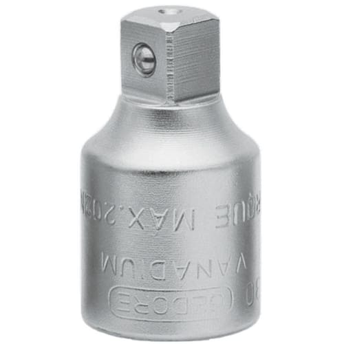 Aço Gedore-Vanadium. Acabamento niquelado e cromado. Para acessórios manuais com encaixe quadrado 12,7 mm 1/2 , conforme DIN 3120, ISO 1174.