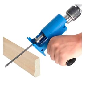 Adaptador para Transformar Furadeira em Serra tico-Tico Adaptador para Transformar Furadeira em Serra tico-Tico Adaptador para Transformar Furadeira em Serra tico-Tico. Para corte com diversos tipos de material: corte de madeira, corte de tubulação de aço, corte de plásticos, etc. - Adaptador para furadeiras de 3/8 e 1/2" - Diâmetro de aperto da haste de conexão: 5-13mm - Diâmetro da haste de conexão: 8mm - Diâmetro de corte: 0-120mm / 0-4.7in - Para corte com diversos tipos de material: corte de madeira, corte de tubulação de aço, corte de plásticos, etc. - Lâminas de serra podem ser rapidamente substituídas rotacionando o mandril sem desmontagem. - Confortável para segurar, fácil de operar, melhor experiência operacional - Feito de material de qualidade, prático, fácil de operar e usar, ampla variedade de aplicações, tem uma longa vida útil. - Material: abs + metal - Cor: Azul - Tamanho da embalagem: 150x110x55mm - Peso da embalagem: 300g - : 90 dias Itens inclusos: - 1 Adaptador de serra tico-tico para furadeira - 1 Punho lateral - 1 Lâmina de serra 150mm para madeira - 1 Lâmina de serra 135mm para metal - Lâmina de serra 100mm speed para madeira Ean: 7907054593683