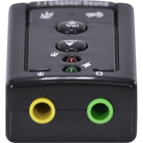 Adaptador Placa De Som Usb 7.1 Canais Virtual Ausb71 Descrição: Ideal para substituir sua placa de som on-board, ou quando sua placa de som não está mais funcionando. Dados Técnicos: Marca: Vinik; Modelo:AUSB71; USB key size 7.1 (virtual) - conecte seu fone de ouvidos e microfone (entrada P2); Suporte 3D sound virtual 7.1 ch; Possui controlador de volume, função mudo para microfone e saída de áudio; Alimentação com a energia da porta USB - nao precisa de fonte de energia externa ; Especificações: Conexão USB: 1.0/1.1/2.0; Led de indicação; Plug and Play; Conexões: P2 3.5mm; Compatibilidade: Windows/Linux/Mac; Dimensões: 5,7 x 2,5 x 1,4 cm; Ambiente de 7.1 canais virtuais; Plug and Play; 4 teclas de função; Características 2 x 3,5 milímetros microfone e alto-falante portas; Cor: Preto;