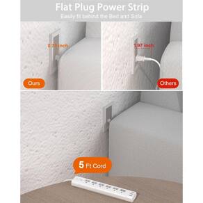 Faixa de alimentação de plugue plano de 2 pinos: com design de plugue plano de apenas 0,75 polegadas, o plugue de parede plano é muito mais fino do que os plugues tradicionais, que podem se fechar facilmente na parede e se esconder na parte de trás de móveis, cama ou geladeira, sem desperdício de cada centímetro de espaço de sua casa.
