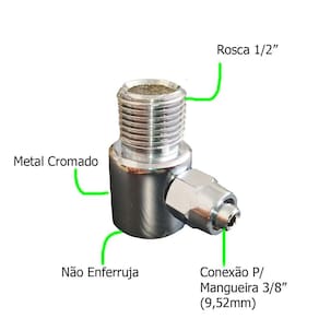 Conexão possui rosca de 1/2 em ambos os lados, possibilitando usar o mesmo ponto de água da torneira que já utiliza. O encaixe da mangueira do purificador é de 3/8.