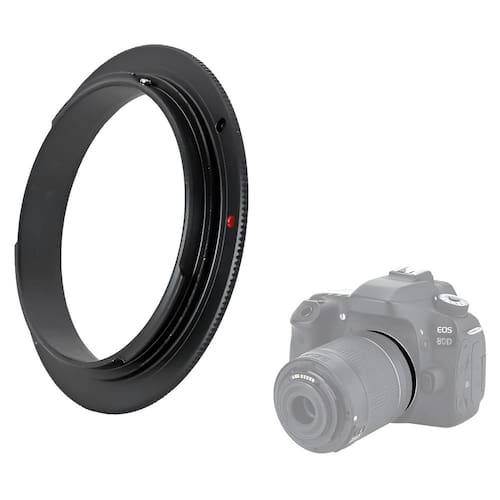 Este Adaptador Reverso 62mm para Lentes e Câmeras Canon EOS você pode colocar uma Lente Canon de rosca frontal de filtro 62mm de forma invertida em um Corpo de Câmera Canon EOS. Este anel de inversão é uma solução ideal para tirar boas fotos macro. Você irá encaixar este Adaptador Reverso de Lente, na parte frontal de sua Lente Canon que possui Rosca de Filtro 62mm, no outro lado este anel possui uma conexão de baioneta que se encaixa no corpo da sua Câmera Canon EOS.Como os contatos eletrônicos da Lente Canon irão ficara do outro lago, a Câmera Canon não irá enviar comandos para a Lente. Sendo assim a lente ficará 100% manual e todas as funções como o foco auto e o controle de um diafragma eletrônico de sua lente não irão funcionar.Características: Adaptador Reverso / Inversão Ideal para Câmeras Canon EOS Lentes de Rosca Frontal de 62mm Feito de alumínio anodizado Possibilita fotografia Macro com lente comum