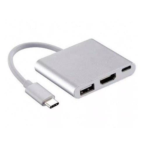 Necessario ter a tecnologia MHL no aparelho para o produto funcionar, verifique antes se seu aparelho possui a tecnologia. Adaptador 1 Porta tipo-C para 3 portas 1 HDMI, 1 USB 3.0, 1 fêmea tipo C Permitir que você espelhe a exibição do seu laptop tipo-C para uma tela HDMI, suportando 4K x 2K 30Hz resolução Conecte-se com a unidade flash via porta USB 3.0 A interface USB 3.0 possui 5Gbps de transmissão de dados de alta velocidade Pode ligar um cabo de carregamento à porta Tipo-C para carregar o seu também 20V / 30A Conector tipo-C reversível permite que você conecte de maneira certa toda vez Plug and play, fácil e conveniente Especificação: Material: Liga de alumínio + ABS + PVC Velocidade: Até 10 GBPS Entrada: USB Tipo-C Saída: 1 x HDMI, 1 x USB 3.0, 1 x Feminino Tipo-C Taxa de transmissão: 5 Gbps USB 3.0 Corrente: 3A máx. Peso: 38g Ean: 7908020909293