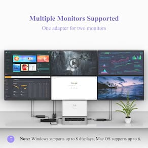 - Este adaptador USB C ou USB 3.0 para HDMI duplo é ideal para trabalhar usando como navegação na web, preparação de planilhas e processamento de texto. Você pode lidar com multitarefas ou apenas visualizar seu conteúdo em uma tela grande. No entanto, para obter o melhor resultado, o adaptador não é recomendado para jogos ou trabalho intensivo de gráficos. Observe que não suporta a reprodução de conteúdo protegido por HDCP.