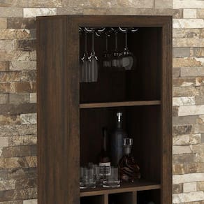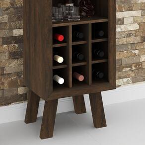 aparador adega com certeza são os detalhes, pois ela possui 1 prateleira, espaço para 9 garrafas e suporte metálico para taças. Incrível, né? Aliás, possui pés em madeira que dão um toque retrô, podendo fazer parte da