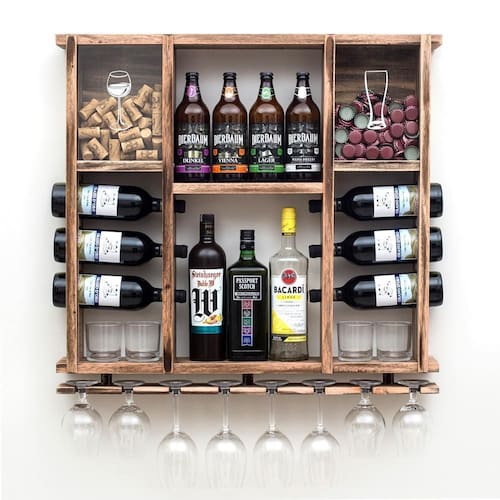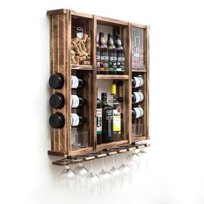 Adega Barzinho de Parede com Porta Rolhas, Porta Tampinhas e Porta Taças - Design Rústico e Funcional