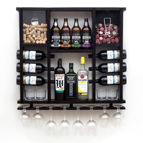 Adega Barzinho de Parede com Porta Rolhas, Porta Tampinhas e Porta Taças - Design Rústico e Funcional