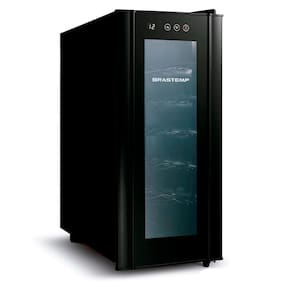 Adega climatizada com capacidade para 12 garrafas, controle eletrônico de temperatura entre 12 e 18°C, iluminação interna em LED e painel eletrônico touch sensor com display de temperatura.Capacidade total de garrafas