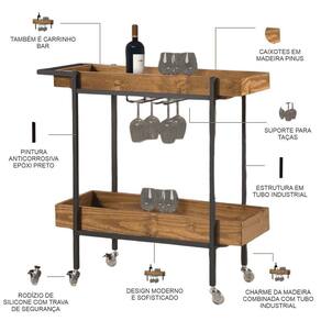 Adega/carrinho Com Base de Aço Reforçado e Resistente, Ideal Para Servir Bebidas, Equipado Com Rodinhas, Facilitando A Mobilidade Compactado Para Se Adequar A Diferente Espaços .