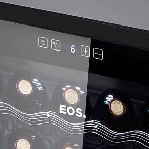 Adega climatizada EOS com capacidade para 34 garrafas, refrigeração por compressor com gás ecológico, painel touch screen, controle de temperatura de 6°C a 18°C, iluminação interna em LED, baixo nível de ruído e sistema antivibração.Capacidade total de garrafas
