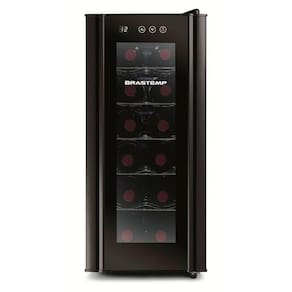 Adega Climatizada Brastemp, a Adega Climatizada tem dimensoes compactas, Controle Eletronico Touch Sensor com display de temperatura na porta e Iluminacao LED, que melhora a visualizacao interna. Tudo com capacidade para 12 garrafas.