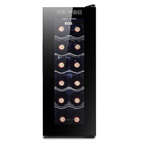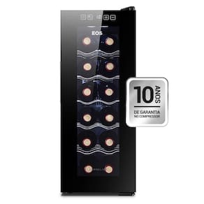 Adega Climatizada EOS para 12 garrafas, com controle eletrônico e preciso de temperatura, sistema antivibração, porta de vidro full glass, prateleiras cromadas, puxadores embutidos, painel touch screen, baixo nível de ruído e trava no painel.Capacidade total de garrafas