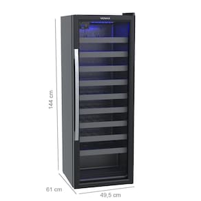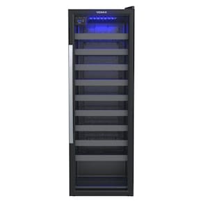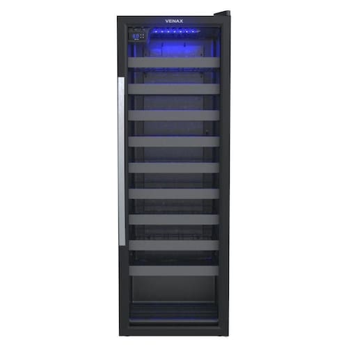 Adega Climatizada Venax Piubella 200 com capacidade para 50 garrafas, controlador digital de temperatura (6C a 20C), luz interna LED azul, porta de vidro duplo (LOW-E) e sistema de refrigeração por compressor.Capacidade total de garrafas