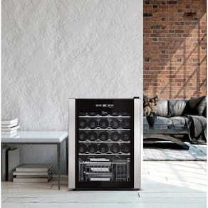 A Adega 24 garrafas é o primeiro passo para quem quer começar a armazenar mais vinhos mantendo a qualidade das bebidas de forma adequada. Possui pequenos emissores de luz elaborados especialmente para não danificar as características do vinho. No design, o estilo sofisticado combina com qualquer ambiente da casa. Tem vidro transparente para facilitar a visualização da parte interna, iluminação em LED branco e acabamento em inox, além de moderno painel touch com o controle de temperatura e trava painel. Com o seu baixo nível de ruído e gás refrigerante ecologicamente correto, os diferenciais da adegas estão completos.