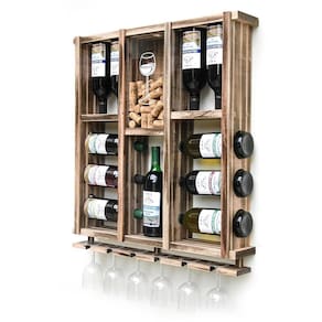 Adega em Madeira Maciça para Garrafas de Vinho com Porta Rolhas e Porta Taças