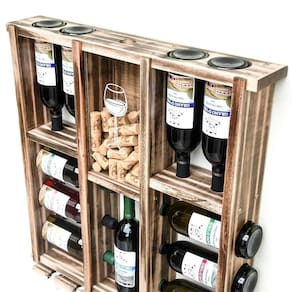 Adega De Madeira Maciça- Porta Rolhas E Porta Taças- Rústica