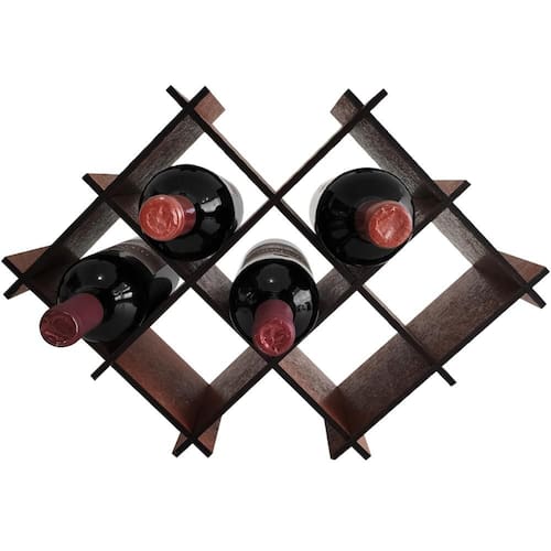 Detalhes do produto: - Além de decorar, a adega garante que o líquido fique em contato direto com a rolha, fazendo com que a mesma não resseque e garantindo a vedação perfeita para o envelhecimento do vinho; - Comporta até oito garrafas com diâmetro máximo de 12cm; - Você recebe o produto montado, pronto pra uso; - Não acompanha garrafas.