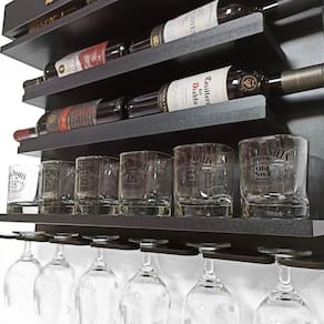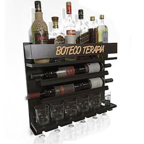 Impressione á todos deixando suas bebidas bem visíveis e organizadas com o nosso BARZINHO de PAREDE. O mdf na cor Nogueira torna a peça Especial, pois seus veios imitam muito bem a Madeira Natural. E pra completar, ocupando pouquíssimo espaço em seu ambiente, você consegue organizar suas bebidas e taças. Capacidade Aproximada para 6 Garrafas + 6 Copos + 6 Taças + 4 Garrafas de Vinho Feito em Mdf 15mm, o que torna a peça bem firme e visualmente muito Bonita. O desenho e a cor da chapa dão um acabamento INCRÍVEL á peça, que dessa forma é capaz de deixar qualquer ambiente muito mais Aconchegante e Agradável. Além de decorar muito bem qualquer ambiente, ele também pode ser um ÓTIMO PRESENTE. Principais Características: • Feito 100% em Mdf 15mm Bilaminado • Capacidade Aproximada para 6 Garrafas + 6 Copos + 6 Taças + 4 Garrafas de Vinho • Dimensões: 60cm de largura x 51cm de altura x 13cm de profundidade Acompanha parafusos e buchas para fixação. Indicações de Uso: PUB’s Home Bar Varandas e Sacadas com temática Gourmet Cozinhas Salas em Geral Churrasqueiras Obs: Imagem Meramente Ilustrativa, Copos, Garrafas e Demais Acessórios Não Acompanham o Produto