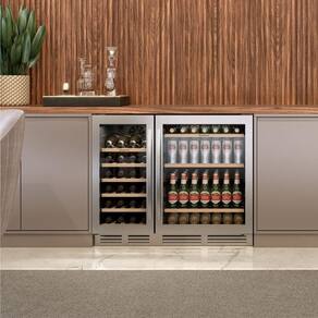 Possui porta de vidro duplo low-e, vidro desenvolvido com baixa emissão de temperatura, emoldurada em aço inox escovado, seamless (sem emendas), o que a torna ainda mais elegante.