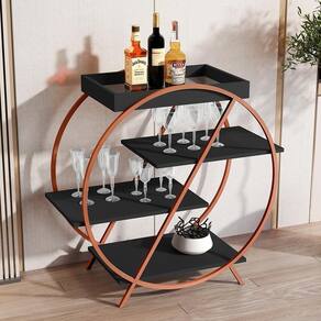 Aparador Adega Bar Preto/cobre Com Prateleira E Nichos Para Vinhos - Pleno