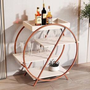 Aparador Adega Bar Branco/Cobre com Prateleira e Nichos para Vinhos - Pleno