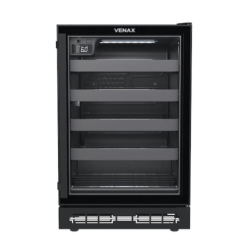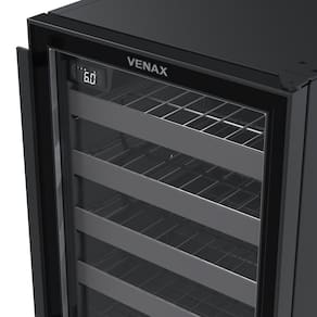 Adega de embutir com controlador digital de temperatura e porta de vidro panorâmicoCapacidade total de garrafas