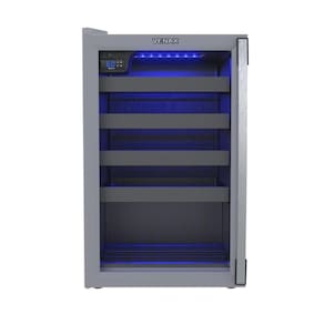 Controlador de temperatura digital, porta com vidro duplo (LOW-E), iluminação interna em LED azulCapacidade total de garrafas