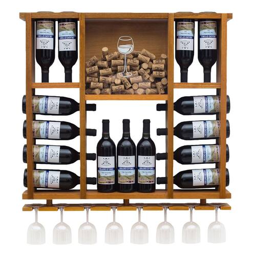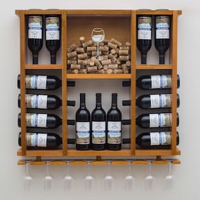 Especificações técnicas: - Marca: Delenha Decor - Modelo: Cerejeira - Material: Madeira Maciça Certificada e Sustentável - Capacidade: Até 15 garrafas de vinho e 8 taças - Dimensões AxLxP : 75 x 80 x 12 cm - Acompanha: Kit de Fixação