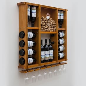 Especificações técnicas: - Marca: Delenha Decor - Modelo: Cerejeira - Material: Madeira Maciça Certificada e Sustentável - Capacidade: Até 15 garrafas de vinho e 8 taças - Dimensões AxLxP : 75 x 80 x 12 cm - Acompanha: Kit de Fixação