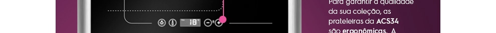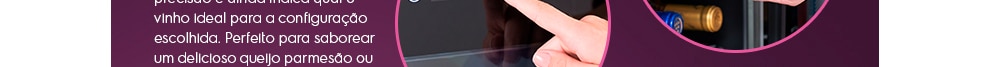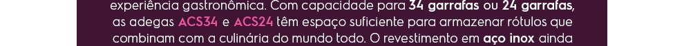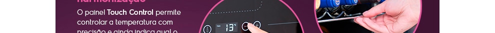 - Wine bar - LED indicador do tipo de vinho - Painel touch control - Acabamento em aço inox - Porta de vidro duplo, temperado, com proteção UV - Iluminação interna em LED - Luz interna com desligamento automático - Prateleiras ergonômicas e removíveis - Baixo nível de ruídoCapacidade total de garrafas