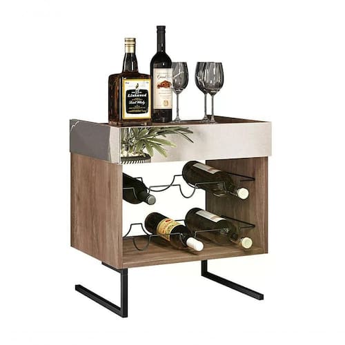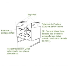 Adega Class, móvel inspirado em estilo industrial, a principal característica da peça é a combinação da rusticidade da madeira com a modernidade dos detalhes metálicos. Estrutura reforçada 100% em BP de 15mm, com acabamento em camada melamínica (Fosco), material altamente resistente à umidade, riscos e mofo. Contém pés metálicos contando com proteção antioxidante e pintura eletrostática, espelhos laterais, aramado para até 06 garrafas, e tampo com espaço para acomodar copos. Suporta até 10 kg distribuídos. Mais produtos da linha Class, você encontra em nosso site, podendo fazer a composição completa para sua casa. Esse móvel chegará em sua casa separado em 02 volumes.