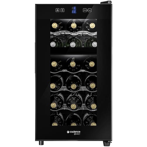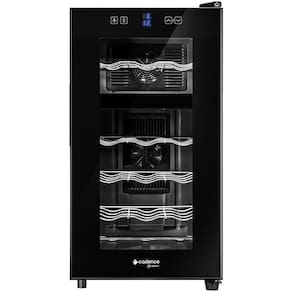 Dual zone: possui 2 cavidades para o armazenamento de diferentes tipos de vinhos com capacidade total para 18 garrafas.