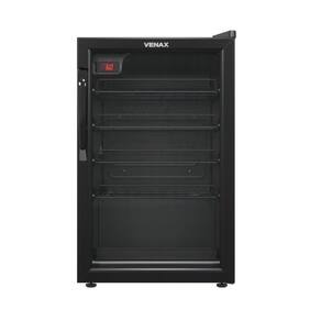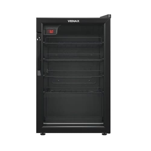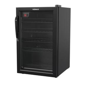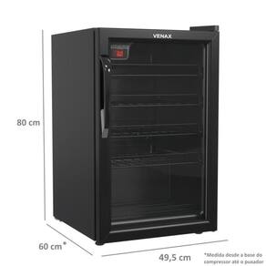 Adega Venax NGV 100 para 24 garrafas, controlador digital de temperatura (6°C a 20°C), porta de vidro duplo (LOW-E), sistema de refrigeração por compressor, gabinete com pintura eletrostática e prateleiras deslizantes.Capacidade total de garrafas