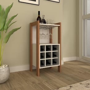 Que tal transformar aquele espaço livre da casa no ambiente ideal para acomodar as suas garrafas de vinhos? Que máximo né? E o melhor, a adega permite acomodar até nove garrafas, de forma rápida e na horizontal, formando no ambiente um ‘’barzinho’’ perfeito com tudo o que você precisa. Adega AZ1032, possui nicho, porta taça e espaço para garrafas, estrutura em MDP e acabamento em BP. Acabamento da Prateleira: BP Acabamento dos Pés: BP Ambiente Principal: Sala de Estar Bandeja: Não Possui Complexidade da Montagem: Baixa: pode ser montado por uma pessoa sozinha Cor: Amêndoa/Branco Cor do Produto: Amêndoa/Branco Cor Interna: Amendoa/Branco Escala de Brilho: Semi-Brilho Escala de Brilho da Prateleira: Semi-Fosco Itens Inclusos: 1 Adega, Manual de Montagem e Kit Ferragens. Linha ou Coleção: AZ Manual de Especificação Técnica: https://product-hub-prd.madeiramadeira.com.br/879140/documents/fb8e9d7e-d6e9-4a33-9888-0f07d3c17b5be2df8c1374cc4f836786az1032.pdf Manual de Montagem e Instalação: https://product-hub-prd.madeiramadeira.com.br/879140/documents/8c9e1d24-bb6f-42b3-8245-1ffdc745df577e6152bb2a21aa834978az1032.pdf Material da Prateleira: MDP Material dos Pés: MDP Material Principal: MDP Necessita Montagem: Sim Origem do Produto: Nacional Pés Reguláveis: Não Peso: 16.5 Peso Máximo por Prateleira: 4 Porta Rolhas/Tampinhas: Não Porta Taças: Sim Porta-garrafas: 09 Possui Adega: Sim Possui Espelho: Não Possui Gavetas: Não Possui iluminação: Não Possui Pés: 04 Possui Portas: Não Possui Prateleiras: 01 Possui Rodízio: Não Possui Vidro: Não Quantidade de Garrafas da Adega: 09 Recomendações de Uso, Manutenção e Limpeza: Para uma limpeza mais efetiva, utilizar apenas pano macio umedecido e sabão neutro. Não utilizar produtos abrasivos. Sapatas Niveladoras: Sim Sistema de Montagem: Sim. Aconselhamos que a montagem seja feita por um profissional. Forre o chão com o próprio papelão de nossas embalagens para evitar danos e arranhões e monte o móvel deitado de costas para cima. Após montado não expor o móvel a fonte de calor ou umidade. Suporta Até (kg): 4 Ean: 7909903483107
