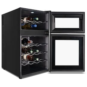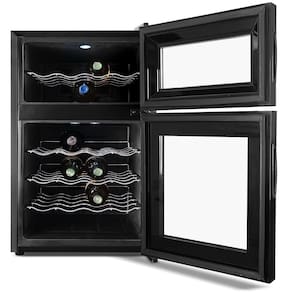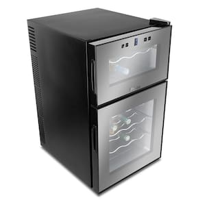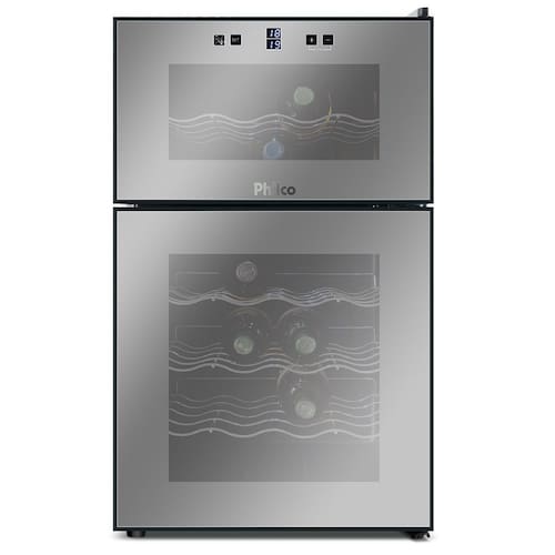 Adega Philco para 24 garrafas com controle eletrônico de temperatura ajustável entre 8°C e 18°C (compartimento superior) e 12°C a 18°C (compartimento inferior).Capacidade total de garrafas