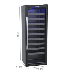 Adega Venax PiuBella 200 para 50 garrafas, 209 litros, display digital, temperatura regulável de 6°C a 20°C, iluminação interna LED azul, porta de vidro duplo (LOW-E).Capacidade total de garrafas