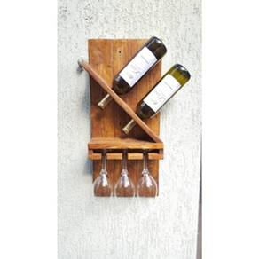 feito em madeira de reflorestamento. Comprimento: 36cm; altura: 60cm; largura: 12cm; armazena 03 taças e 02 garrafas; acompanha parafusos e buchas para fixação;