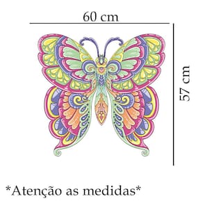 Adeseivo para parede mandala - borboleta Medida: 60 x 57 cm As imagens anunciadas são ilustrativas Tamanho do adesivo O adesivo da foto parece grande Então atenção: O modelo que está na foto não se refere ao tamanho do adesivo anunciado. deixamos o adesivo grande para que você possa visualizar melhor o produto que está comprando