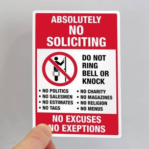 Material: PVC Tamanho: 9,5 x 14 cm Aviso de não solicitação: mensagem ousada e direta de “Absolutamente nenhuma solicitação” com uma lista de atividades proibidas, incluindo nenhuma política, nenhum vendedor e nenhuma solicitação de caridade. Durável e resistente às intempéries: feito de material de vinil de alta qualidade, este adesivo autoadesivo foi projetado para suportar condições internas e externas. Fácil de aplicar: o adesivo permite uma aplicação rápida e fácil em portas, janelas ou paredes sem bagunça. Ideal para uso residencial e comercial: perfeito para residências, apartamentos, escritórios e lojas de varejo para evitar visitantes indesejados e manter a privacidade. Tamanho versátil: mede 9,5x14 cm, oferecendo uma presença clara e perceptível enquanto se encaixa na maioria das molduras de portas ou janelas.