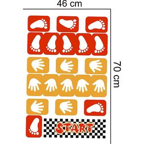 Adesivo amarelinha mãos e pés educativo Medida: 46 x 70 cm As imagens anunciadas são ilustrativas Tamanho do adesivo O adesivo da foto parece grande Então atenção: O modelo que está na foto não se refere ao tamanho do adesivo anunciado. deixamos o adesivo grande para que você possa visualizar melhor o produto que está comprando Vantagens: - já vai recortado - fácil aplicação e sem sujeira, não precisa de cola. - acompanha manual impresso. - renovação do ambiente. É o fim das paredes brancas, sem vida Onde aplicar Em qualquer superfície lisa. Onde não aplicar Paredes úmidas, superfícies porosas, com relevo, com texturas, irregularidades ou com infiltrações. Local para aplicação: aplique onde sua imaginação mandar paredes, móveis, revestimentos, azulejos, tetos, janelas, portas, vitrines, vidraças, , carros, notebook, banheiro, geladeira e muito mais. Marca: Não Informado