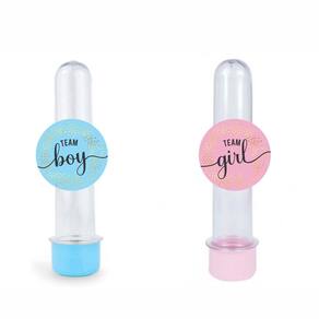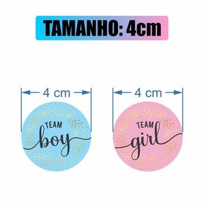 Na compra está incluso 120 adesivos ao todo, sendo 60 adesivos com a frase team boy e 60 adesivos com a frase team girl.