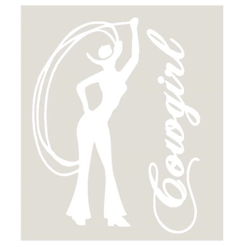 Adesivo Rodeo West modelo Cowgirl cor: Branco, fabricado em recorte eletrônico, ideal para automóveis, vidros, paredes etc.