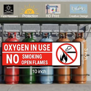 Material: PVC Tamanho: 25,4 x 7,6 cm Aviso de oxigênio transparente: texto em negrito “OXIGÊNIO EM USO” com uma mensagem clara de “Proibido fumar” e “Proibido abrir chamas” para evitar situações perigosas. Durável e resistente às intempéries: feito de vinil de PVC de alta qualidade, este adesivo foi projetado para suportar ambientes internos e externos, garantindo visibilidade duradoura. Fácil de aplicar: o suporte autoadesivo permite uma aplicação rápida e fácil em qualquer superfície lisa, como portas, janelas ou paredes. Design visível e eficaz: O design em vermelho e branco brilhante garante que o aviso seja altamente visível, tornando-o perfeito para instalações médicas, ambientes industriais ou instalações domésticas de oxigênio. Essencial para a segurança: ideal para áreas onde o oxigênio está em uso, fornecendo um lembrete importante para evitar incêndios e acidentes em ambientes ricos em oxigênio.