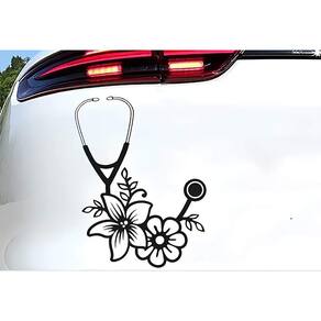 Adesivo de carro estetoscópio com flores As imagens anunciadas são ilustrativas Tamanho do adesivo O adesivo da foto parece grande