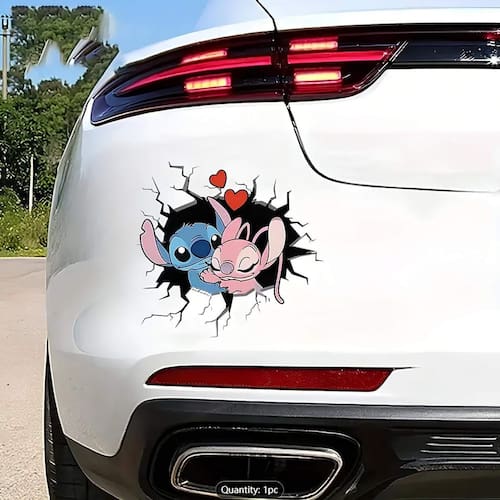 Adesivo de carro stitch e angel As imagens anunciadas são ilustrativas Tamanho do adesivo O adesivo da foto parece grande