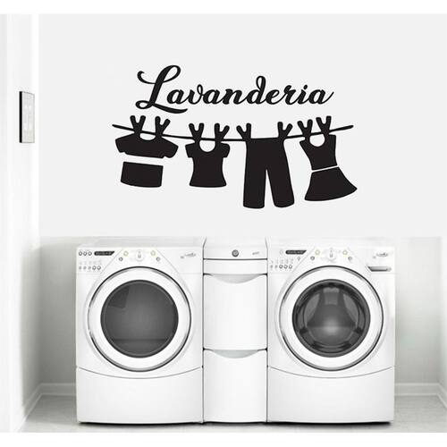Adesivo De Decoração Parede Lavanderia, E Roupas No Varal